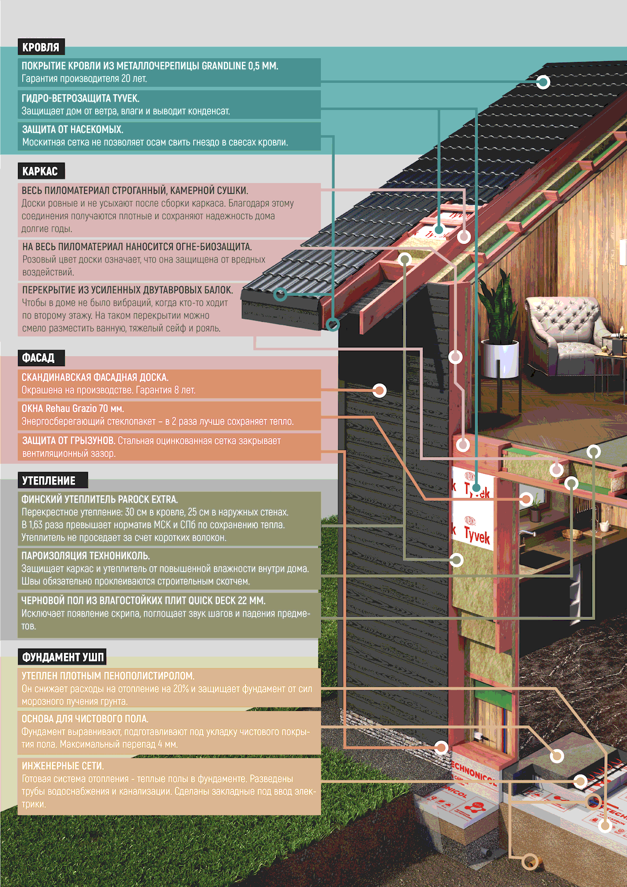 Наши материалы экологичны и безопасны для здоровья, не выделяют токсичные вещества и не вызывают аллергии. Ваш дом «дышит».