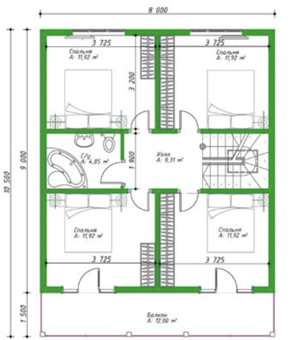 Ригель несущих перегородок – строганная доска камерной сушки сечением 45х195 мм