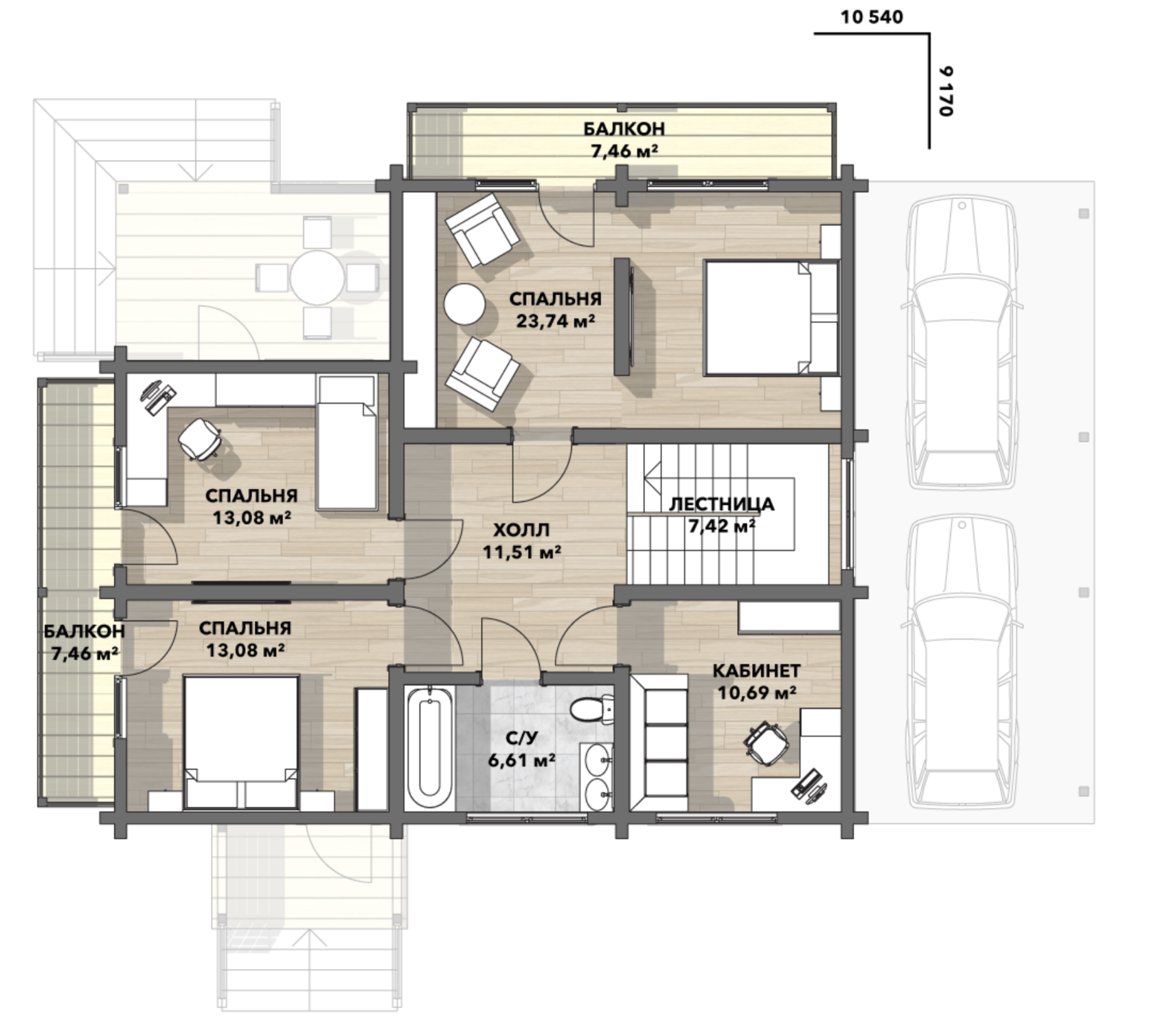 Подшива свесов кровли и террасы/углы дома – строганная доска камерной сушки, окрашенная на производстве, под цвет дома