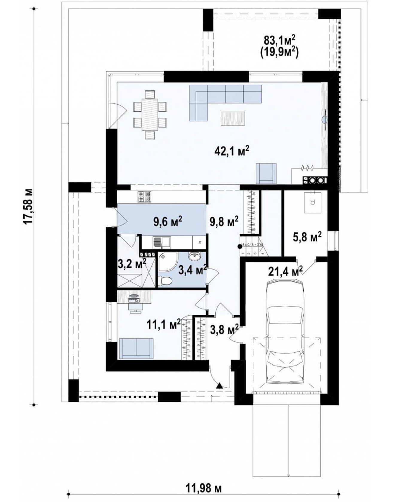 Прогрессивные технологии и рациональная планировка. Минимализм, хайтек и фьюжн — основные черты стилей присущие данному типу коттеджей. Для тех, кто всегда в курсе событий, кто идет в ногу со временем.