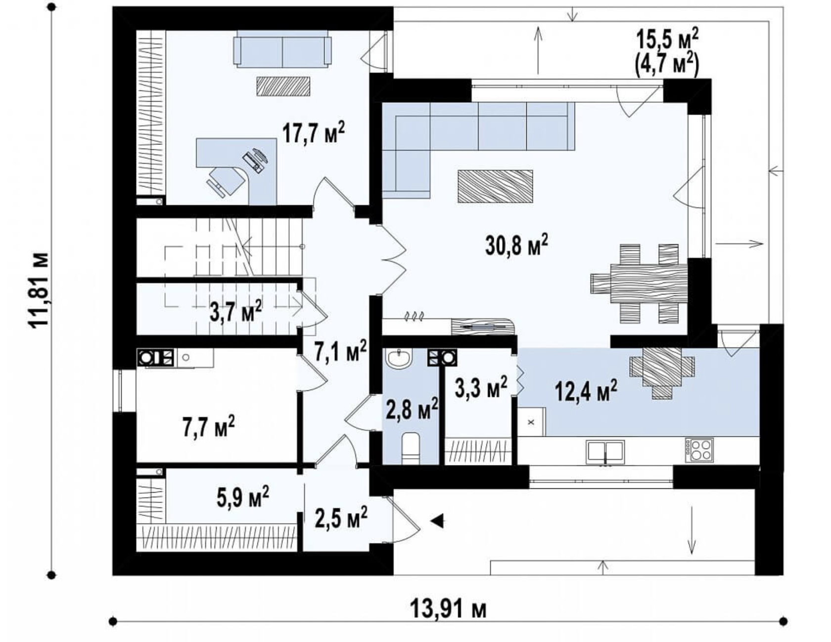Прогрессивные технологии и рациональная планировка. Минимализм, хайтек и фьюжн — основные черты стилей присущие данному типу коттеджей. Для тех, кто всегда в курсе событий, кто идет в ногу со временем.