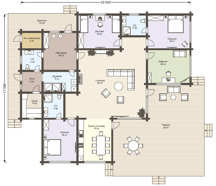 Стропила – составные балки из строганной доски камерной сушки сечением 45x290 мм (195+95), шаг 580 мм