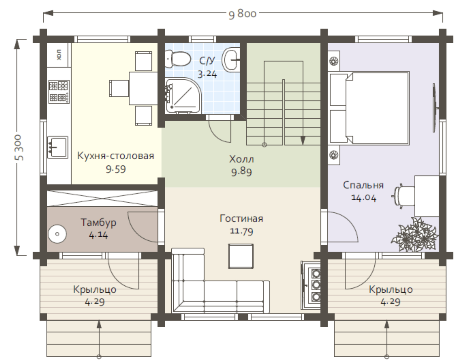 Входные лестницы, строганная доска камерной сушки, окрашенная на производстве, под цвет дома