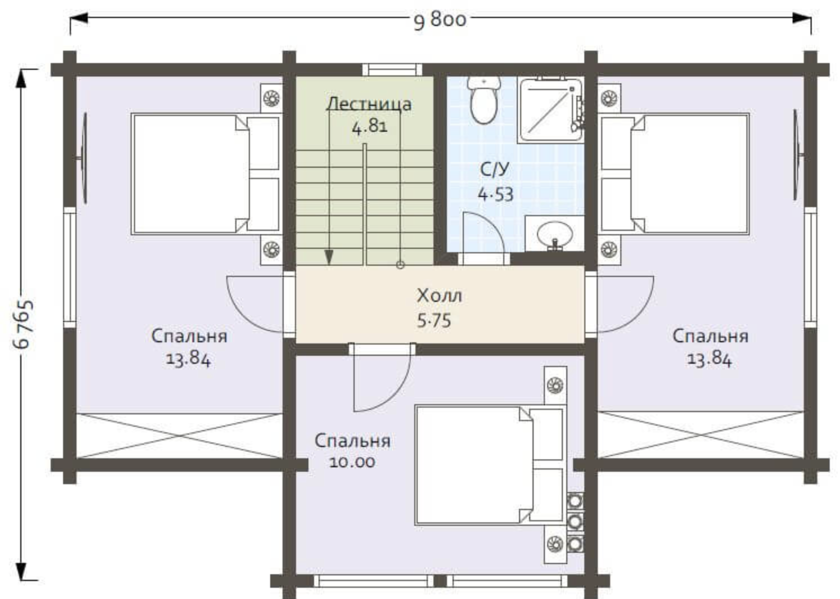 Карнизные свесы/наличники оконных и дверных проемов/углы дома – строганная доска камерной сушки, окрашенная на производстве, под цвет дома