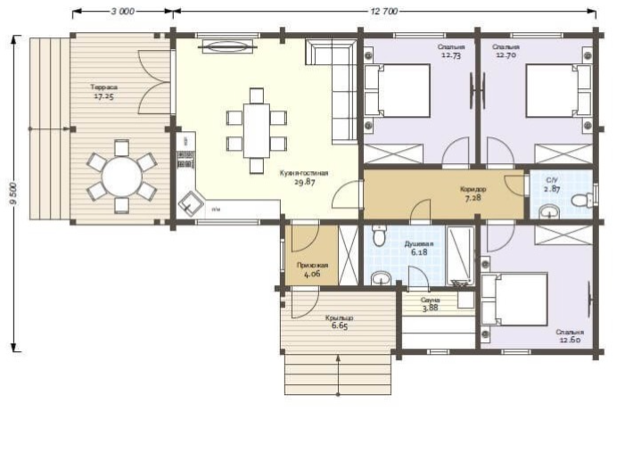 Каркас, перила из сухой строганной доски, пол - террасная доска, из хвойных пород (ель, сосна), с рифлёной поверхностью «Вельвет», исключающей скольжение, балясины и заходные столбы заводские, точёные, камерной сушки